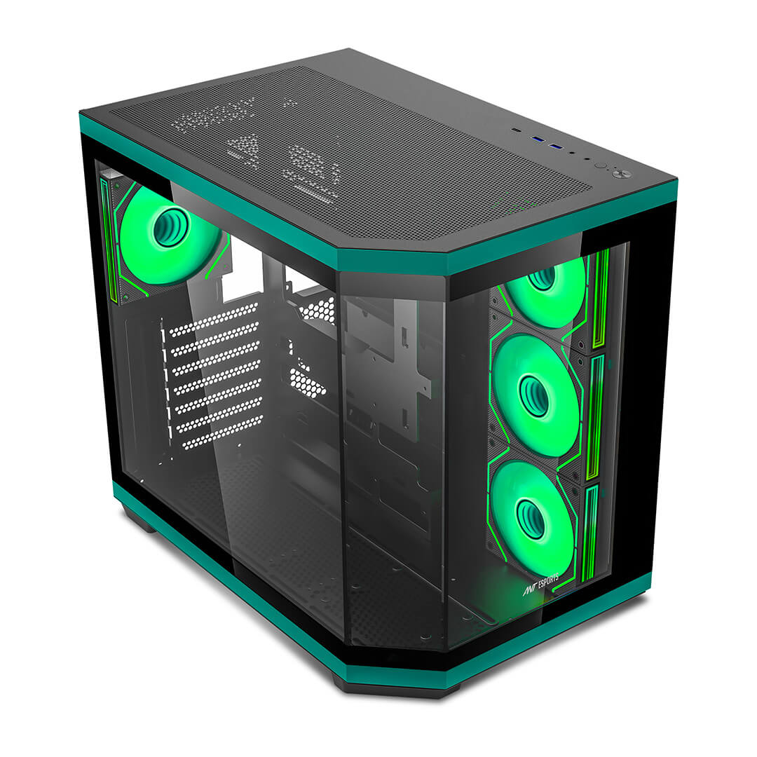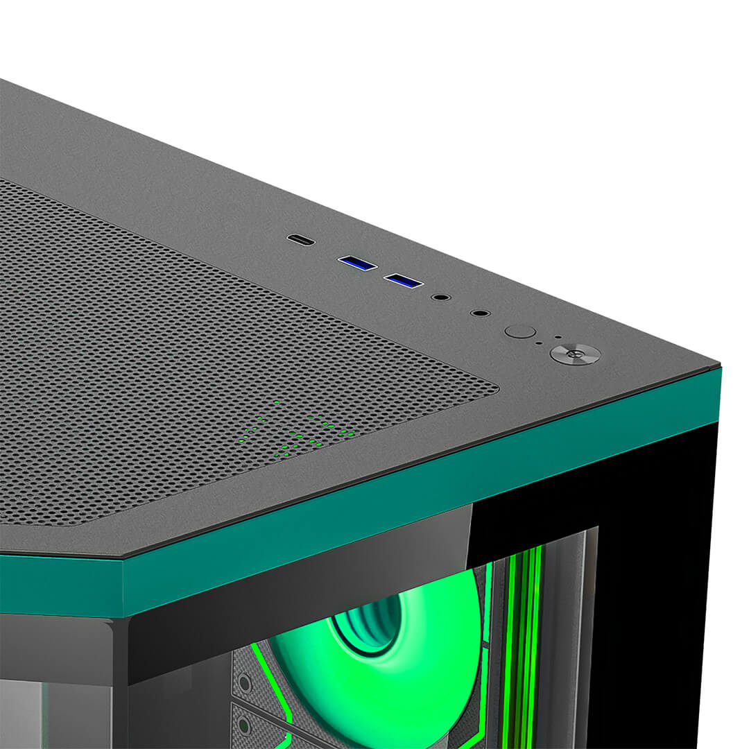 Ant Esports Crystal X11 Mid-Tower Gaming Cabinet Green with Pre-Installed 4 x 120 mm ARGB Fans