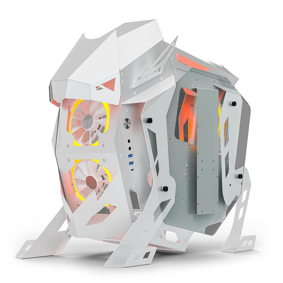 The chassis is designed with open spaces and an open-frame structure, allowing for unobstructed airflow to maintain a consistent and efficient cooling environment for your components.