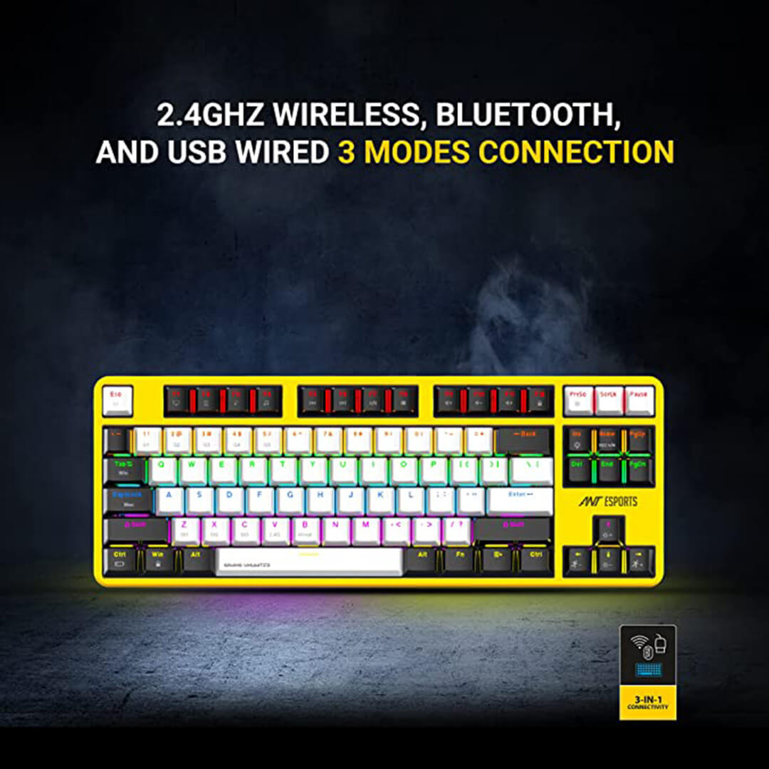 The Ant Esports MK4500 Pro TKL Mechanical Wireless Gaming Keyboard epitomizes versatility and productivity. Allowing connection with up to five devices simultaneously via Bluetooth, 2.4 GHz, and wires connection, the MK4500 Pro is your one-stop solution for all your devices in one place. Simply press a button to switch between the connected devices to realize your dream of a truly multi-functional setup in a compact workspace.