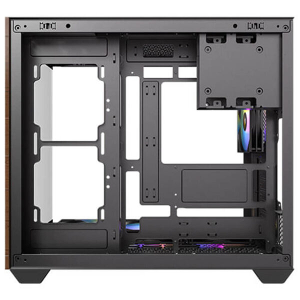 CX800 Wood ARGB’s seamless left and front glass panels offer an unobstructed view of your build, creating a stunning showcase for your components. Right side of front is made of wood that could be seamlessly integrated into your interior design style.