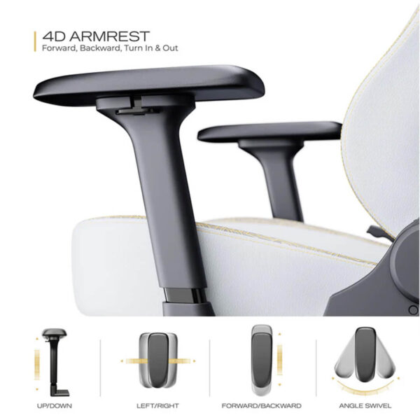 The premium PU leather padding on the 4-dimensional adjustable armrests gives our gaming chair a luxurious feel. Designed with grooves that will embrace your elbows and provide perfect arm support, the armrests on this gaming chair are an often overlooked but very important detail.