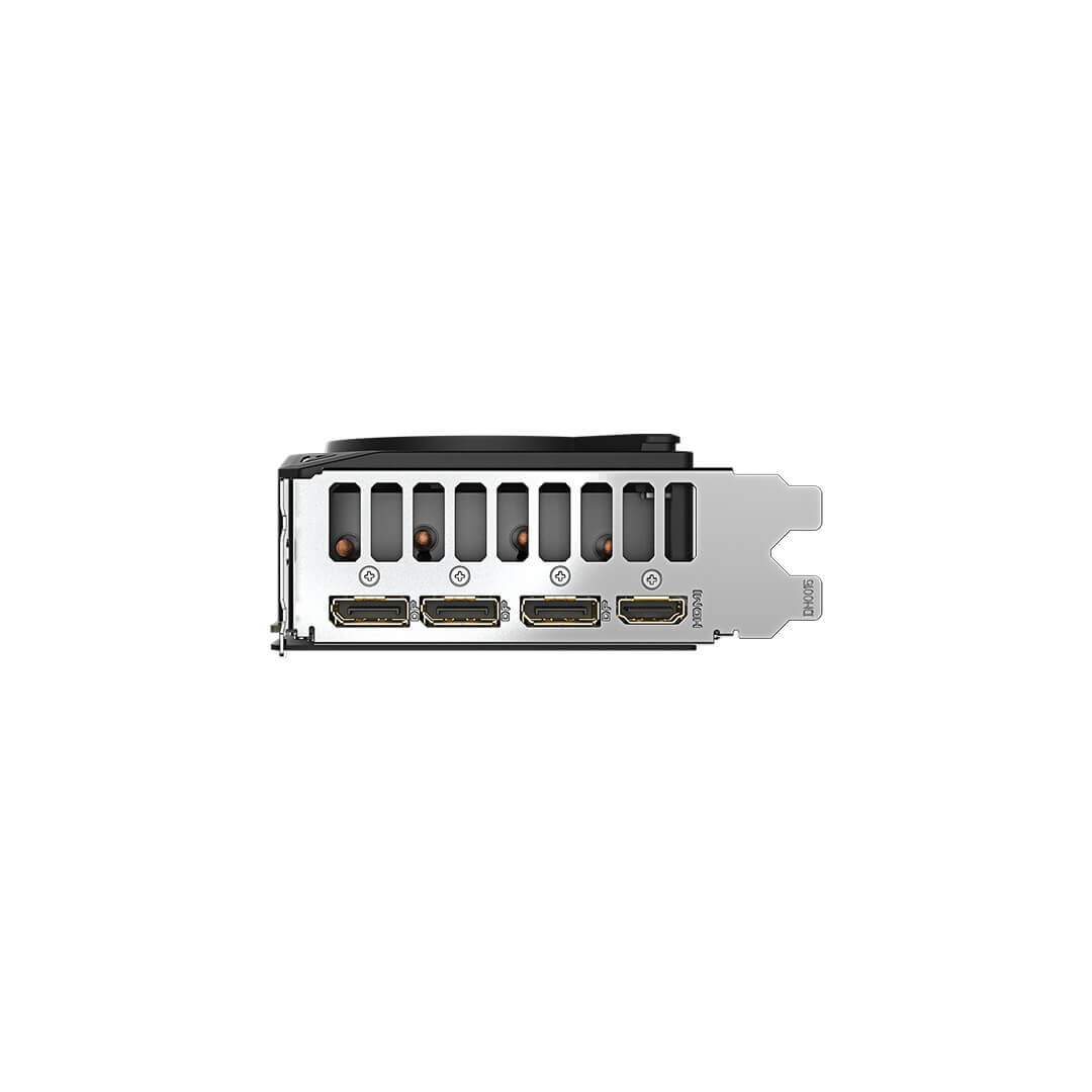 The large copper plate directly contacts the GPU, coupled with the composite copper heat pipes, which quickly transfers the heat of the GPU and VRAM to the heatsink.