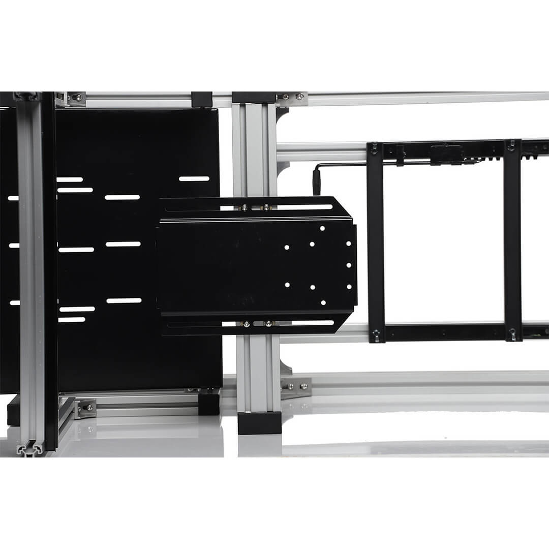 The Pro Sim Racing Cockpit is Rigid | Compact | Durable Choice of GT / Formula Style seating position Compatible with Fanatec DD1 / DD2 / CSL DD Adjustable Seat height and angle Seat Slider to adjust the reach Built In TV Monitor Stand |