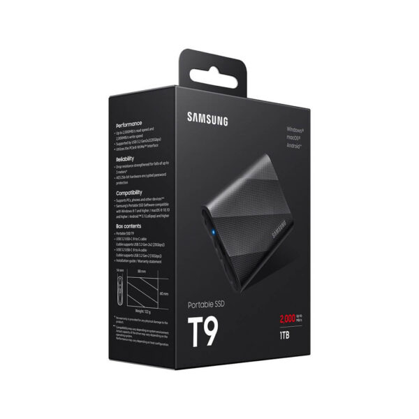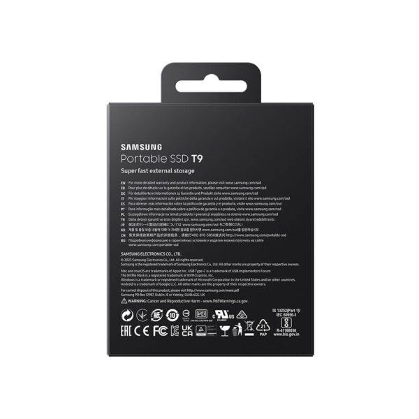 Equipped with Samsung’s Dynamic Thermal Guard, the T9 minimizes potential performance drop from overheating and sustains fast transfer speeds. What’s more, the T9 is designed in compliance with the international safety standard IEC 62368-1, providing an extra layer of reassurance and safety.