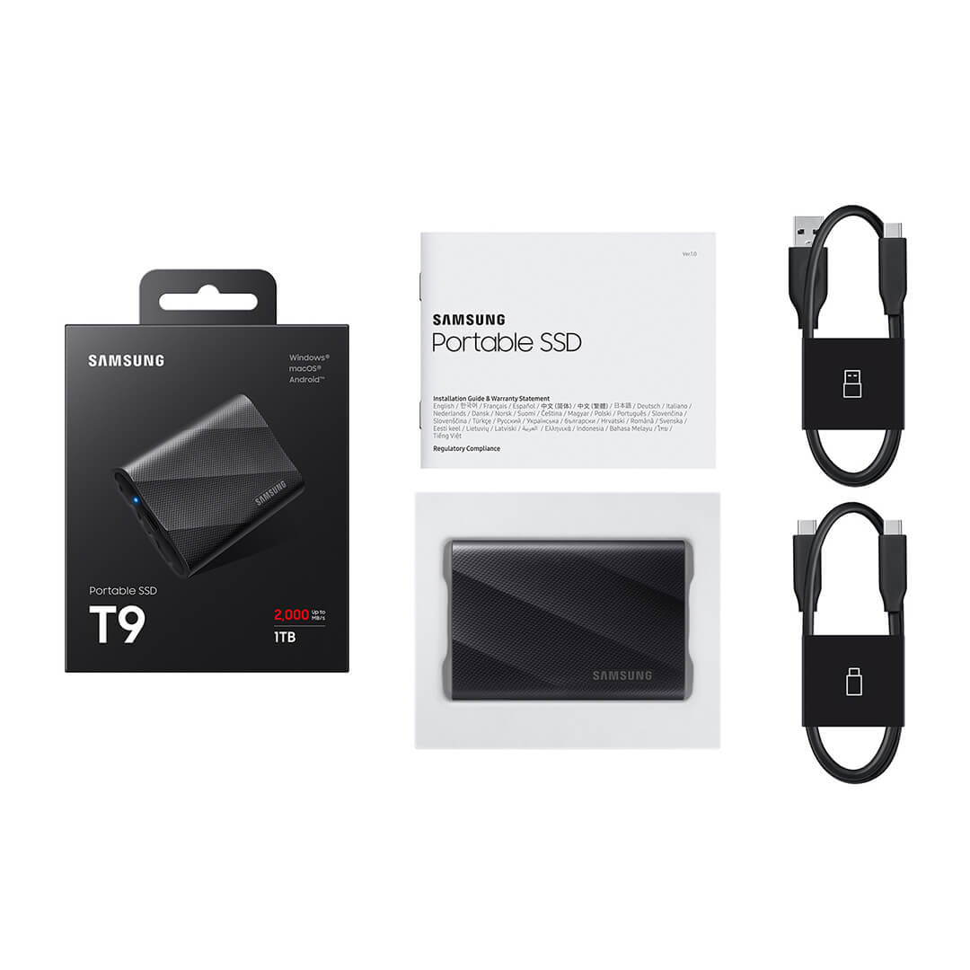 Sync your gears seamlessly with T9. The T9 is compatible with Windows®, macOS®, Android™ phones and tablets, gaming consoles, 12K camera and more. It also includes a USB-C® to C and a USB-C® to A cables for smooth connectivity.